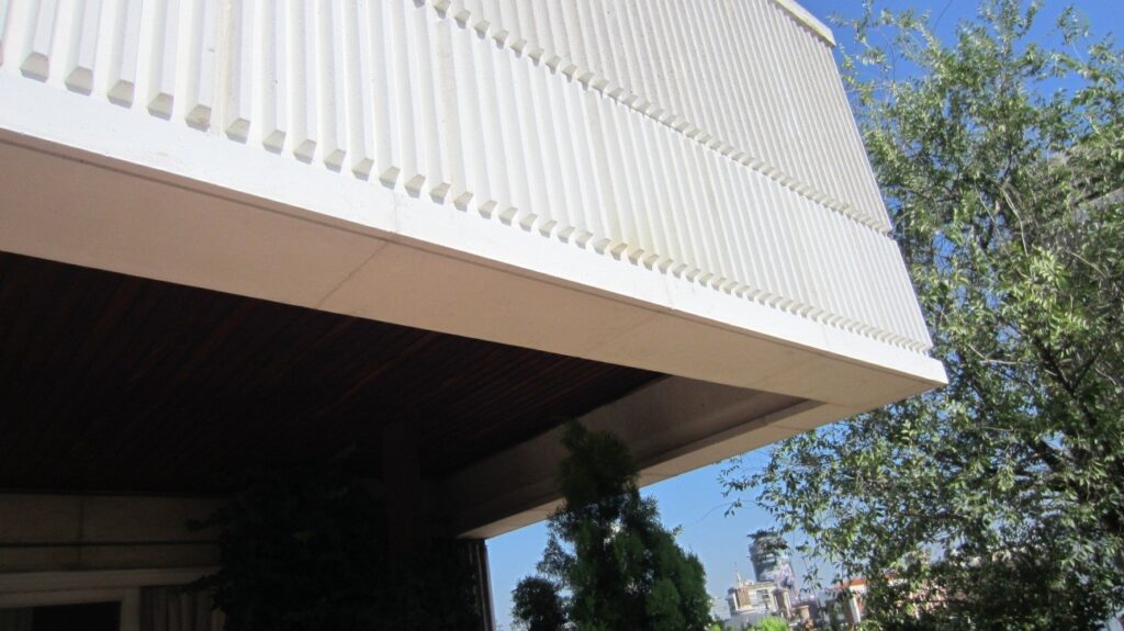 Restauración completa de fachada eliminando los elemento prefabricados disgregados y sutituyendolos por nuevos prefabricados reproducidos con exactitud mediante molde.